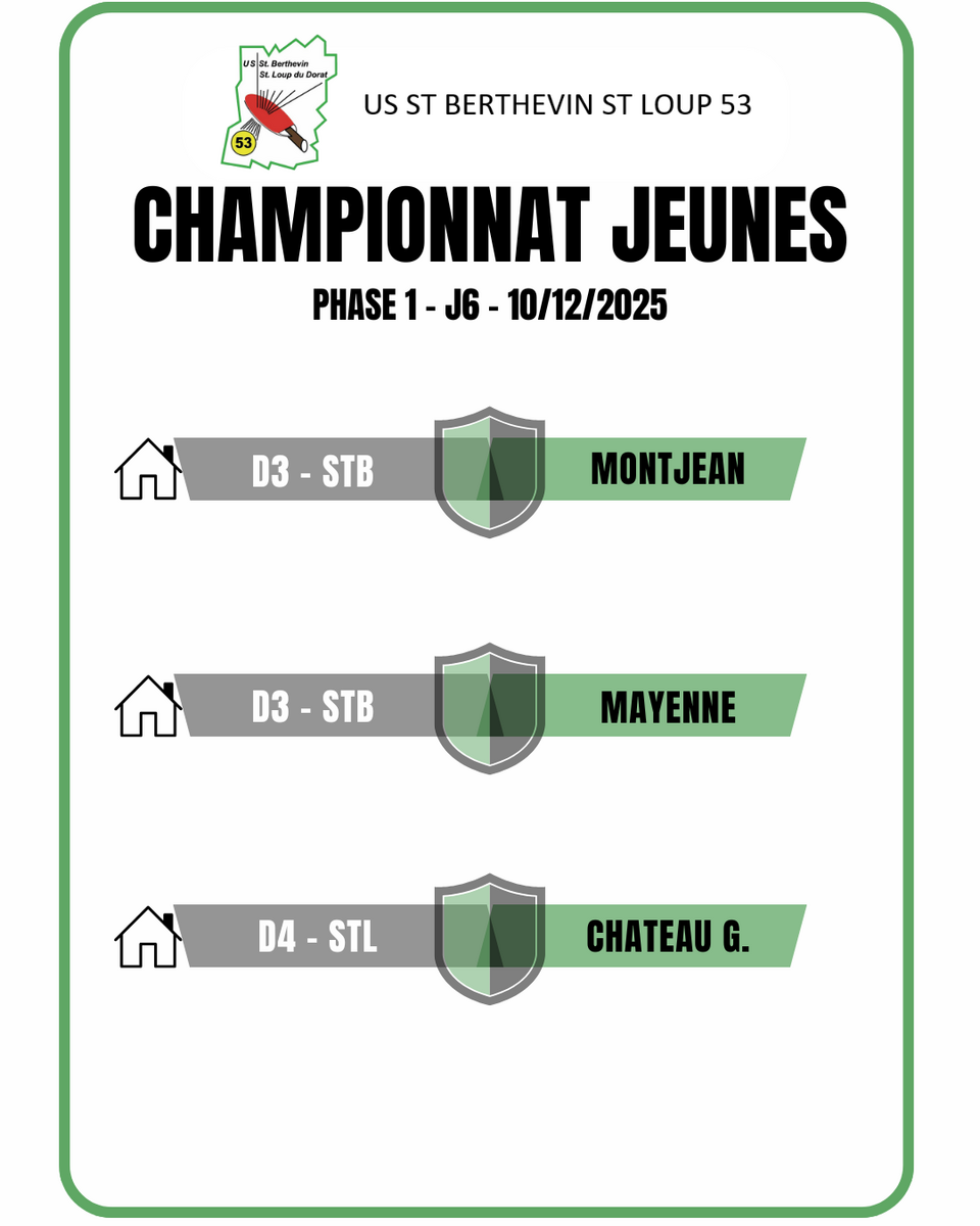 Avant Match Championnat jeunes du Samedi 13/12/2025