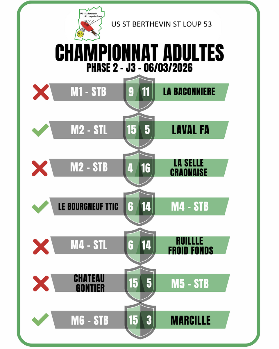 M5 STB : Défaite nette et sans bavure, qui se retrouve 3ième après cette 4ième journée (avec 1 match en plus, puisqu'il y a des exempts!)