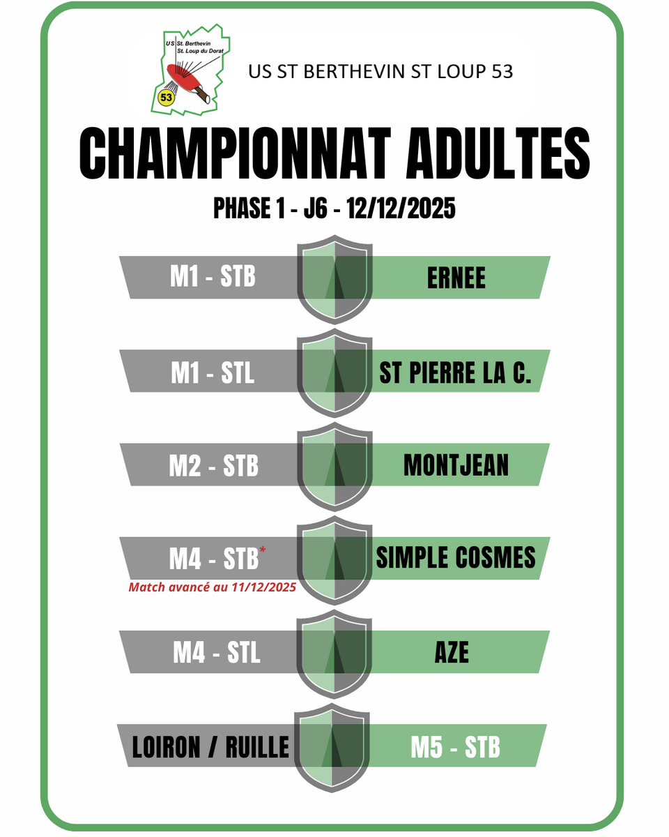 AVANT MATCH - Championnat Adultes 12/12/2025