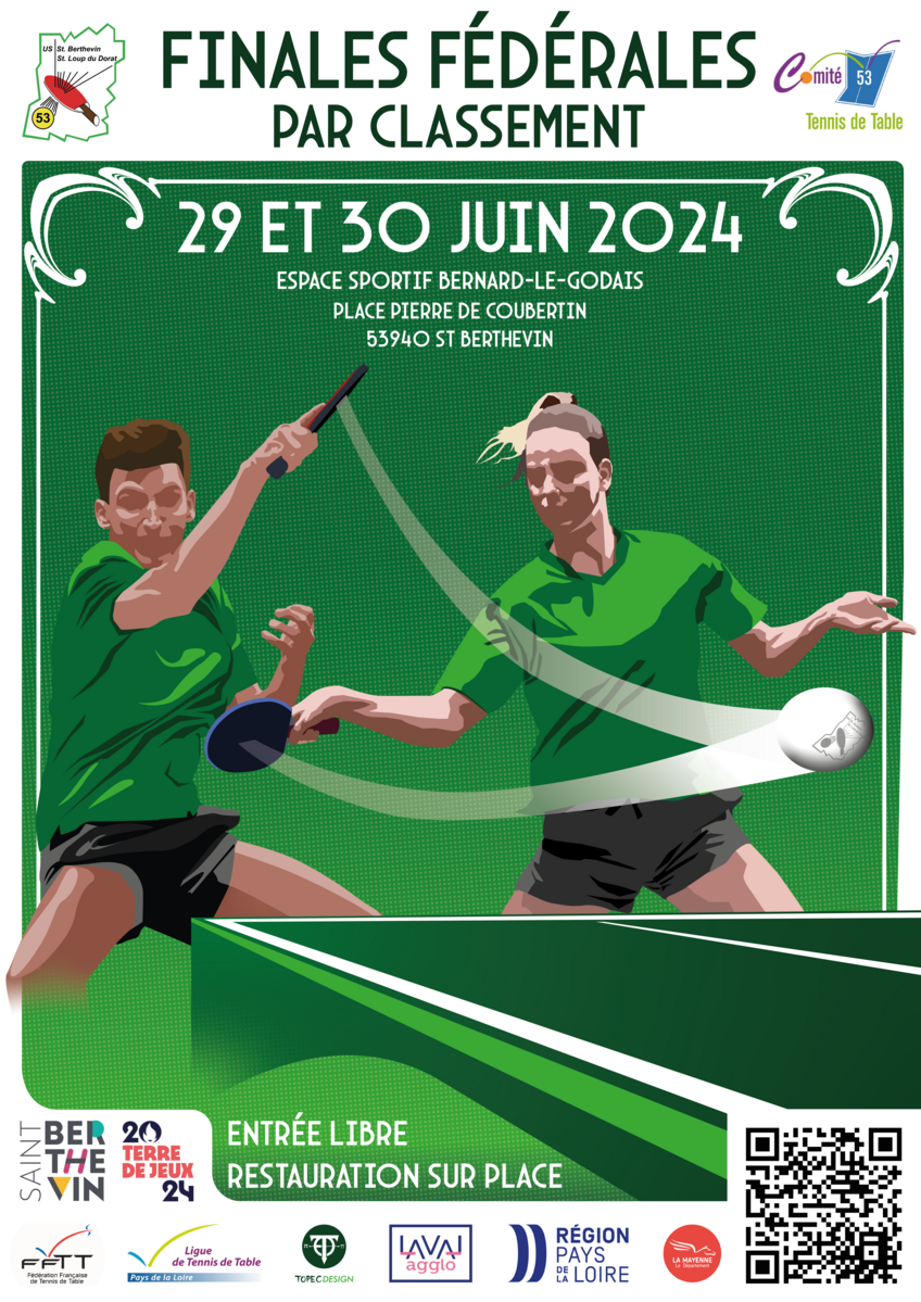 Après 2001, 2003 et 2005, l’US Saint-Berthevin Saint-Loup a de nouveau l’honneur d’accueillir et de co-organiser avec le comité départemental de la Mayenne de tennis de table, les finales fédérales par classement de tennis de table.