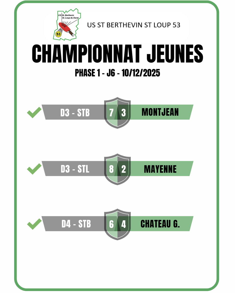 Victoire de nos 3 équipes jeunes !! Ce qui permet donc aux D3 de monter en D2 et notre D4 de monter en D3 !!
