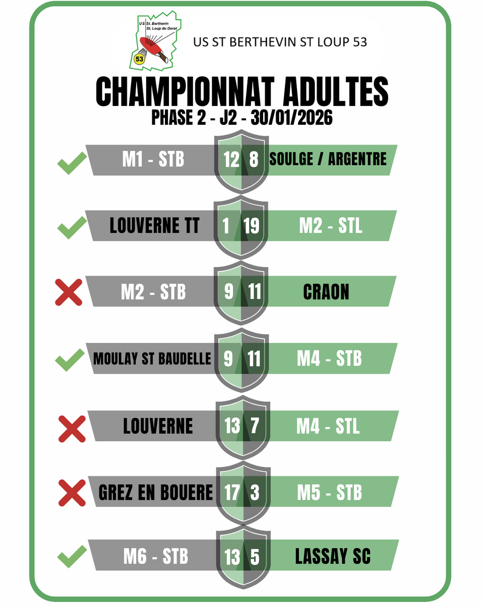 ❌La M4 de St Loup s'est incliné 13/7 contre Louverné.