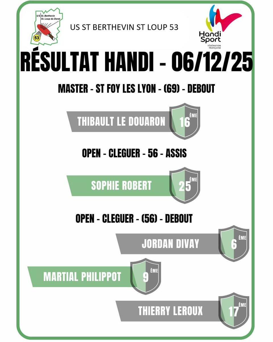 En open à Cleguer en assis Sophie Robert 25, en debout Jordan Divay 6, Martial Philippot 9 et Thierry Leroux 17.